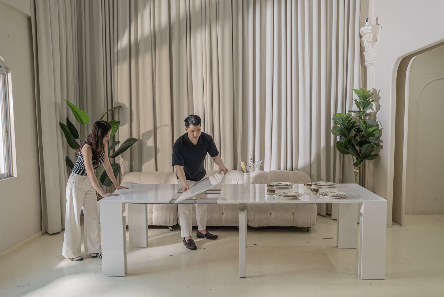 This 6-in-1 dining table is a 2-ft console table at its smallest, but expands up to 9-ft long to accommodate up to 12 people. Experience the most versatile dining table in the market today.